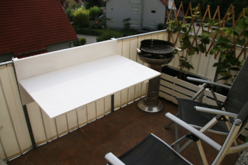 Seit langem haben wir das Problem, dass wir keinen vernünftigen Tisch auf unserem Balkon haben. Wir haben nur einen runden, alten Gartentisch, der mit über 90cm Durchmesser ziemlich Platz wegnimmt.