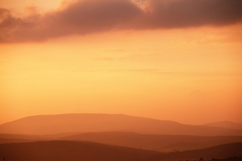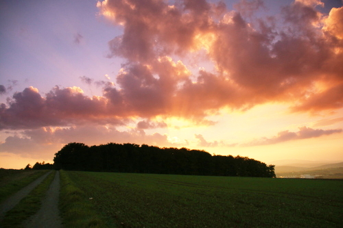 Sonnenuntergang über der Rhön am Abend