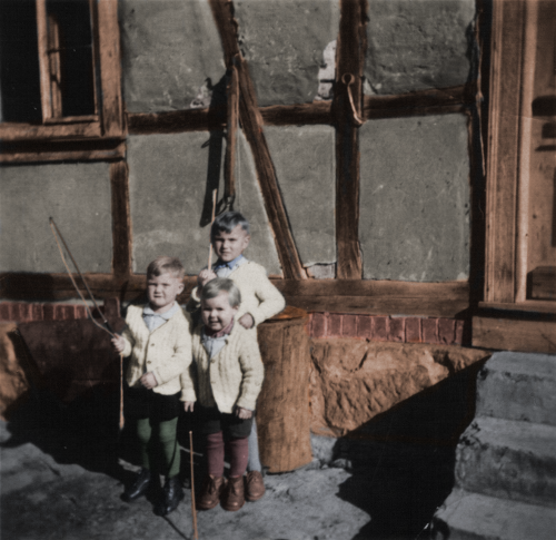 Schwarz-Weiss zu Farbe Posted on November 9, 2014 by Jan Das Original in Schwarz-Weiss, Mitte der 50er Jahre: Die Re-Colorierte Variante (Farben der Kleidung sind angenommen):