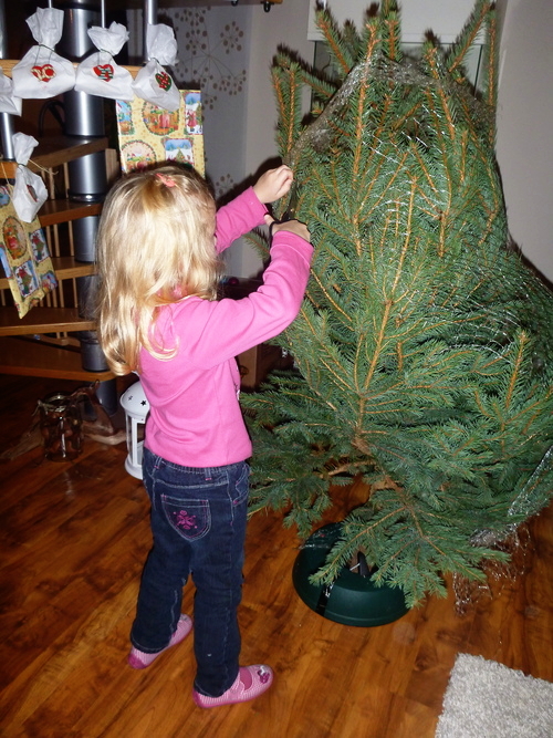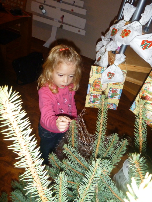 Weihnachtsbaum Posted on December 5, 2014December 8, 2014 by Jan Heute haben wir endlich unseren Weihnachtsbaum beim Bauern geholt. Ein ziemlich anständiger, der sogar duftet. Unser Weidenkranz, den wir vor ein paar Wochen gebastelt haben, hat nun endlich einen Zweck: